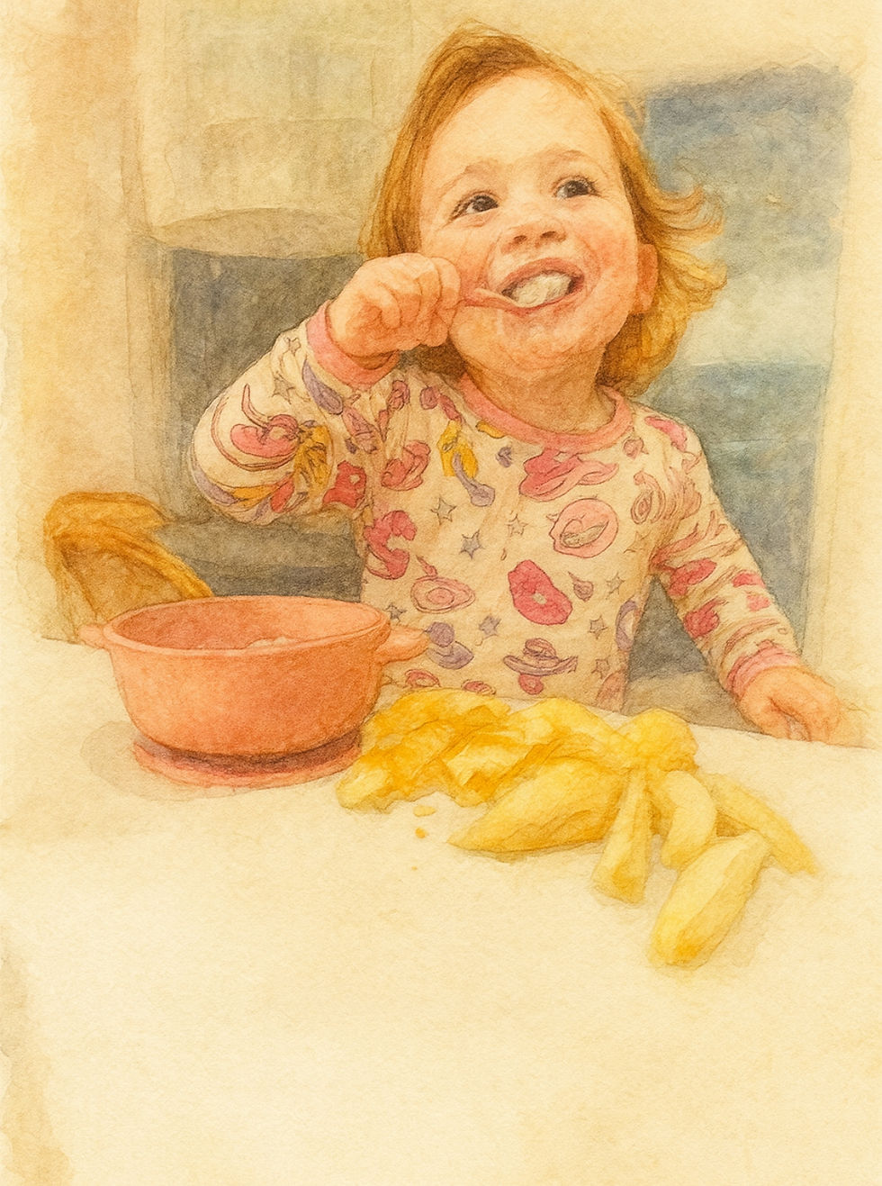 The second half of the day is full of snacks, play, and hopefully some outdoor time. Dinner isn’t just about eating; it’s about connection. Toddlers love to be included—give them a little snack while you cook, talk them through the steps, let them stir or sprinkle or taste. These moments are where their love of food, family, and learning grows.